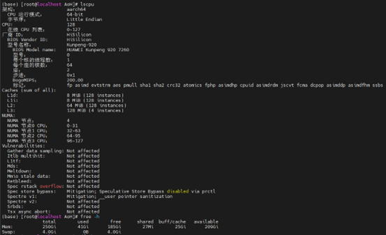 SK90 DeepSeek智算一體機(jī)包含2個(gè)鯤鵬920模組,單模組配置64核,實(shí)際配置如下: