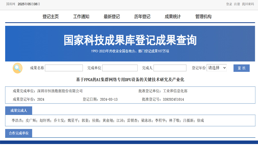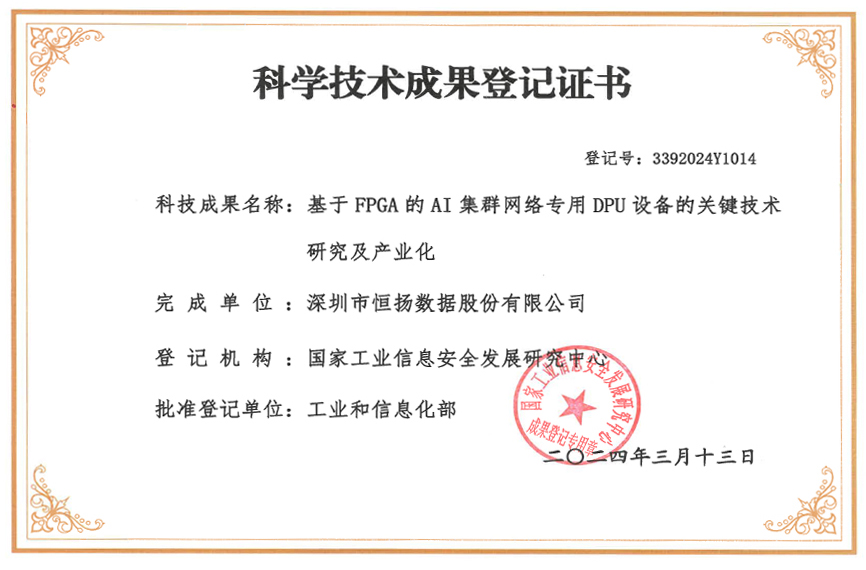 恒揚(yáng)數(shù)據(jù)致力于成為行業(yè)領(lǐng)先智能計(jì)算與數(shù)據(jù)處理領(lǐng)域的領(lǐng)航者,聚焦DPU加速、智算一體機(jī)及數(shù)據(jù)處理及應(yīng)用解決方案的研發(fā)與產(chǎn)業(yè)化。公司累計(jì)獲得百余項(xiàng)核心專利,產(chǎn)品廣泛應(yīng)用于AI智算中心、云計(jì)算數(shù)據(jù)中心和邊緣算力等領(lǐng)域。此次成功錄入國家科技成果庫,既是恒揚(yáng)數(shù)據(jù)技術(shù)實(shí)力的里程碑,也是公司踐行技術(shù)創(chuàng)新賦能的完美體現(xiàn)。